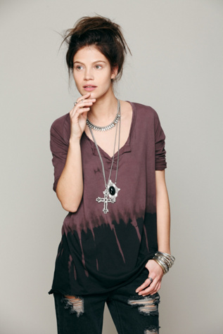 This is the We The Free Mad Hatter 3/4 Tee. I love the tie dye ombre and the two colors work beautifully together. At $78 its a little pricier for a simple t-shirt, but Free People tends to be great quality.